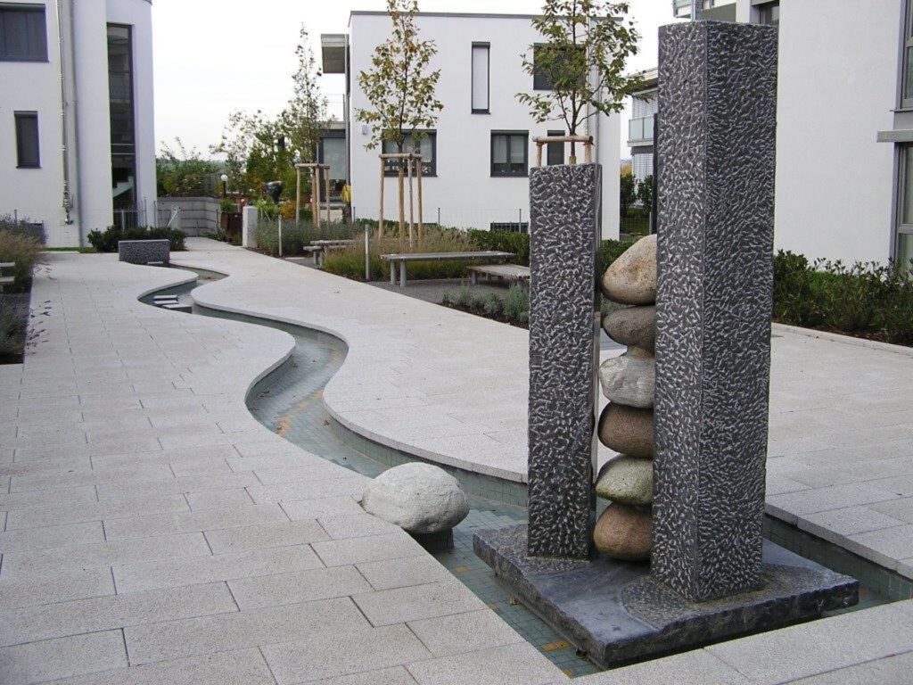 Die Materialien und Armaturen können frei konfiguriert werden. Gespeist werden Brunnen oder Quellsteine entweder mit Quellwasser, mit einer Zysterne oder mit einem dafür angelegten Wasserbehälter.